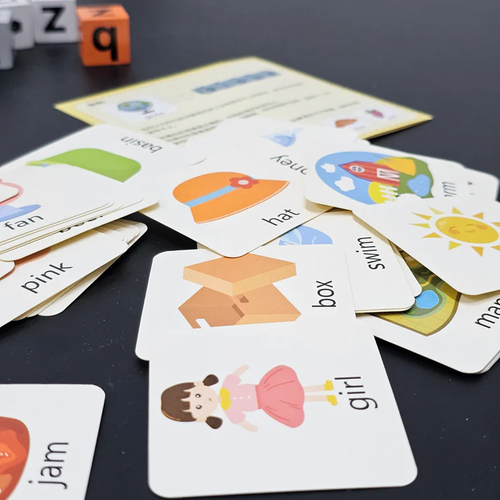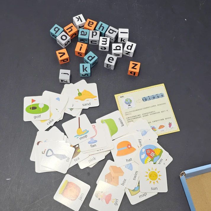 🧩 Includes English word cards with pictures + matching letter blocks